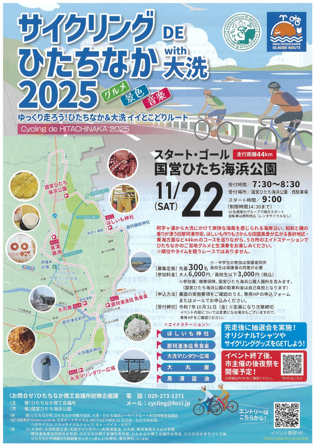 2025年11月22日(土)に、国営ひたち海浜公園にて、「サイクリングDEひたちなかwith大洗2025」(主催:ひたちなか商工会議所)が開催されます💁