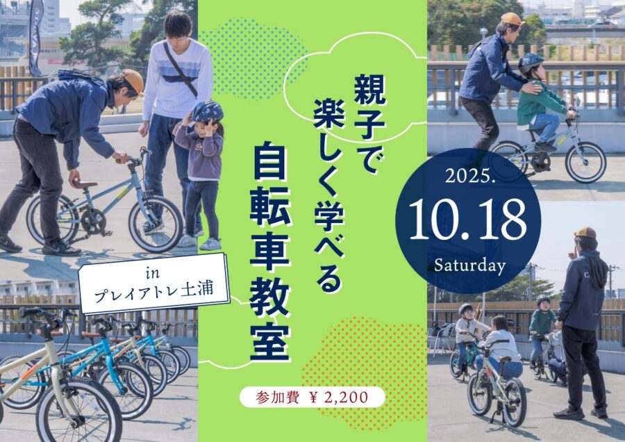 2025年10月18日(土)に、プレイアトレ土浦にて、「親子で楽しく学べる自転車教室」(主催:サイクルスポット&ル・サイク)が開催されます。