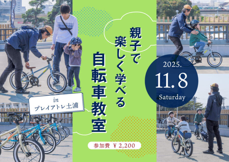 2025年11月8日(土)に、プレイアトレ土浦にて、「親子で楽しく学べる自転車教室」(主催:サイクルスポット&ル・サイク)が開催されます。