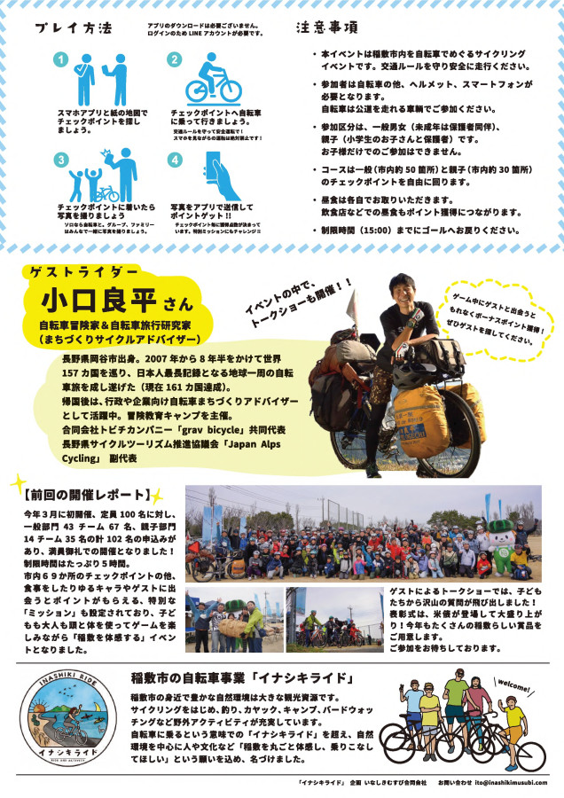 🚩内 容 :自転車🚴で稲敷市内をめぐるロゲイニング形式のサイクリングイベントです🎶