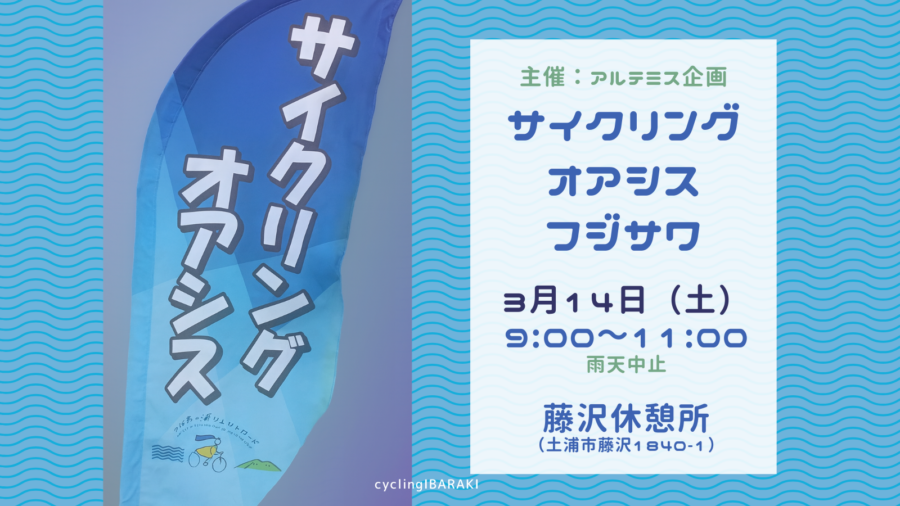 つくば霞ヶ浦りんりんロード藤沢休憩所にて、サイクリスト向けに給水サポートを行います(主催:アルテミス企画)。