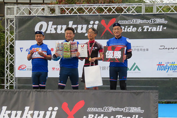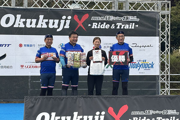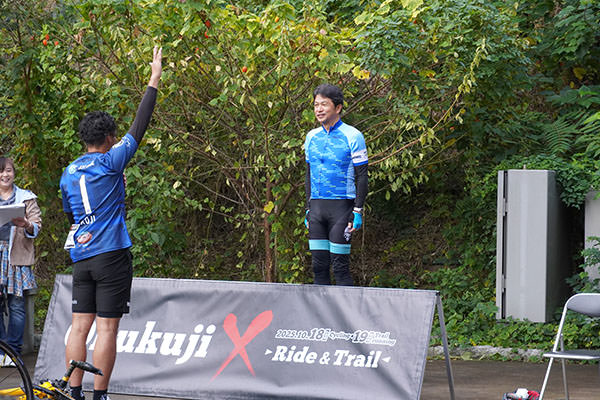 水戸市から大子町まで向かう過酷なコースにもかかわらず、多くの方が健闘され、1日目のサイクリング部門は112名が完走し、完走者率は85.5%。2日目のトレイルランニング部門は43名の方が完走し、完走者率は55.8%でした。2日間とも参加された37名の中では、56.7%にあたる21名が両日とも完走されました。